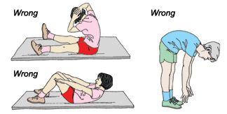 Ορισμένες ασκήσεις μπορεί να κάνουν περισσότερο κακό από καλό! Αν έχετε ήδη οστεοπόρωση ή αν έχετε ήδη υποστεί ένα κάταγμα, θα πρέπει να αποφύγετε ασκήσεις που ενέχουν υπερβολική κάμψη της σπονδυλικής στήλης, όπως είναι :